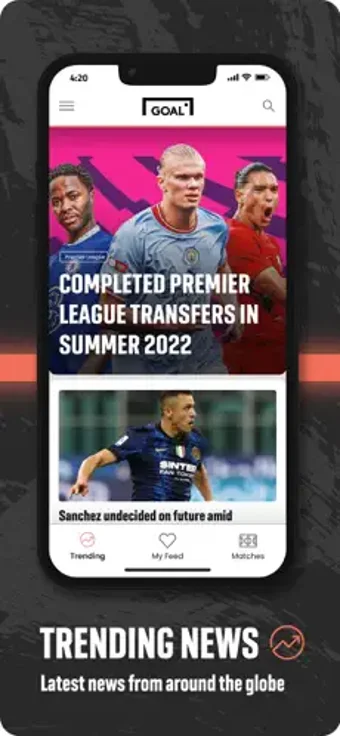 Goal.com เป็นแอปพลิเคชั่น กีฬา ฟรีที่คุณสามารถติดตามข่าวสารล่าสุดเกี่ยวกับการ แข่งขันฟุตบอล และข่าวด่วนทั้งหมด แอปนี้นำเสนอ สถิติที่ครอบคลุม เพื่อช่วยคุณวิเคราะห์ประสิทธิภาพของแต่ละทีม ตลอดจนการอัปเดตสดสำหรับการแข่งขันที่กำลังดำเนินอยู่