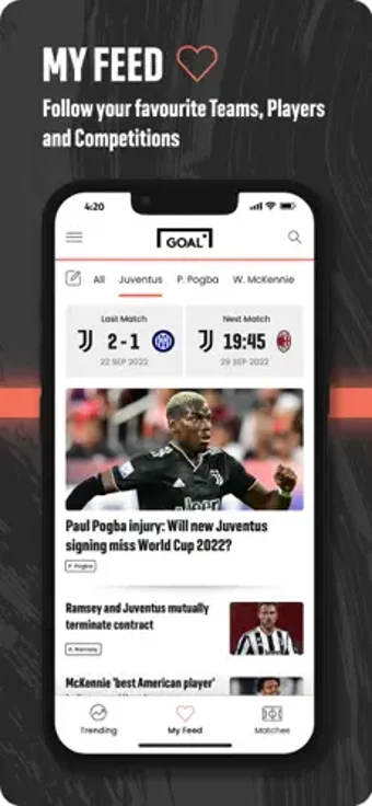 Goal.com ใช้ประโยชน์จากส่วนต่อประสานที่เรียบง่าย รวดเร็วและใช้งานง่าย แม้กระทั่งสำหรับผู้ใช้ใหม่ของแอป คุณสามารถปรับแต่งได้ ฟีดหลักของแอปจะแสดงเฉพาะ เนื้อหาที่เกี่ยวข้องกับคุณ เลือกทีมที่คุณต้องการติดตามและรับการอัปเดตเกี่ยวกับลีกแชมเปี้ยนชิพที่คุณวางแผนจะจับตามอง มีตัวเลือกในการ ติดตามผู้เล่นแต่ละคน เช่นกัน